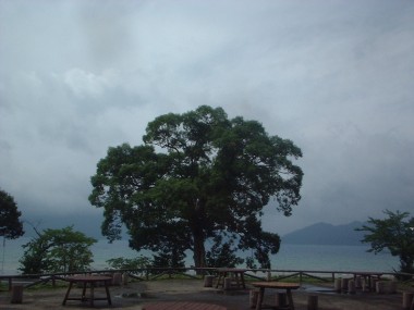 天気が悪いと、湖畔は静かです。