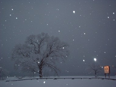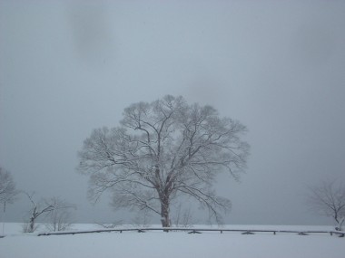 向こう岸が見えない位の雪降りです。