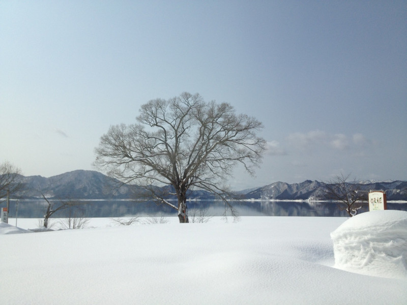 とても良い天気です。湖に映る雪景色が絶景です。。冬だけの贅沢です(^_^)v