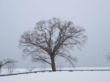 今日の朝、雪が降りました。今は晴れて、降った雪も融けそうです。