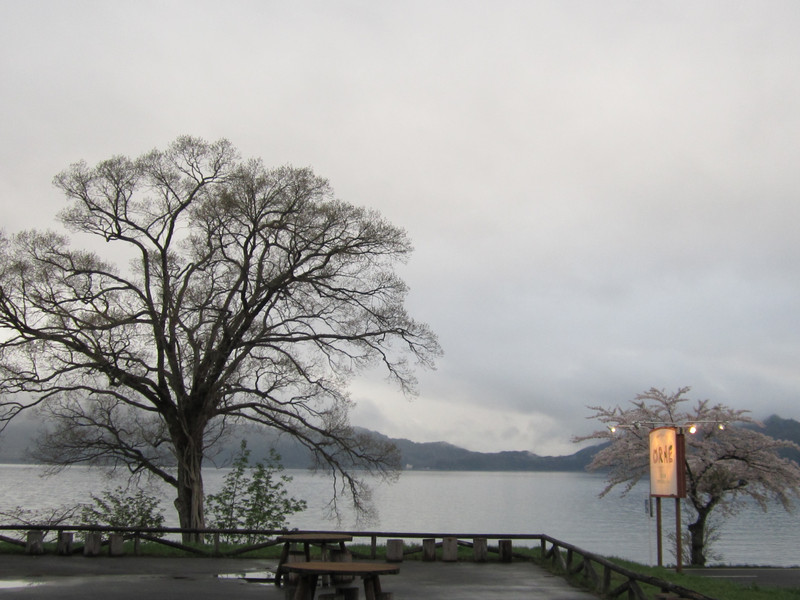 湖畔の桜も綺麗に咲きました。雨で散らないで欲しいです。