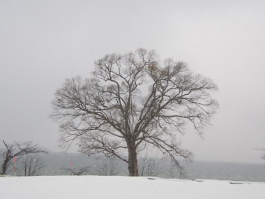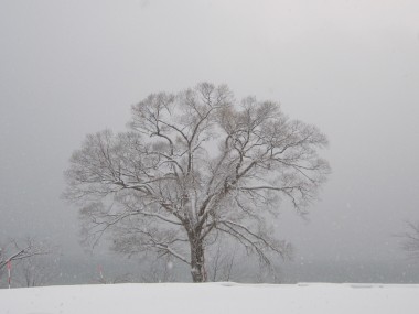 今日もしんしんと雪は降っています。 レストランから見えるナラの木の上...