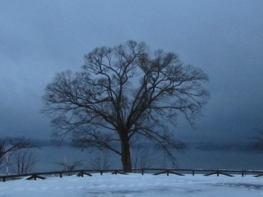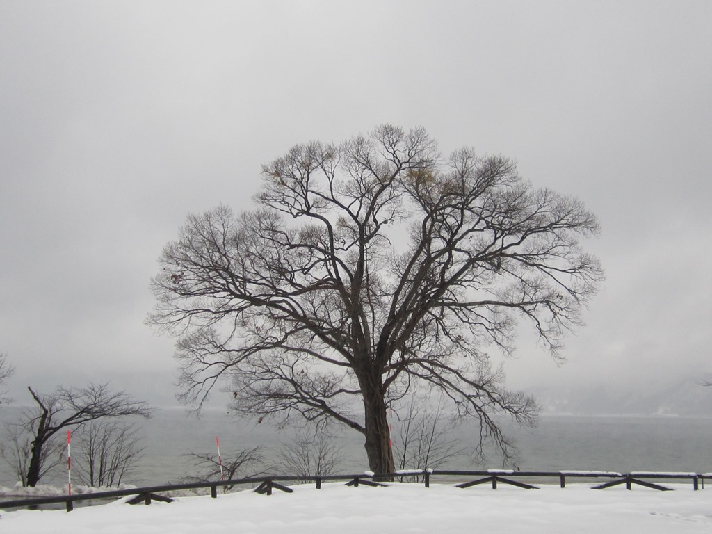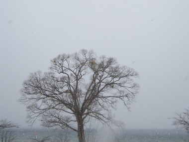 朝は晴れていましたが雪が降ってきました。 今日の湖畔は風が強いです。
