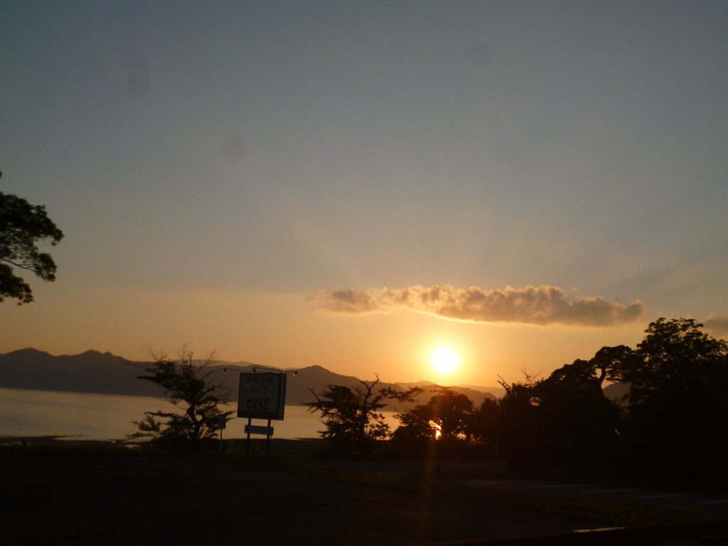 今日も暑かったですね。もうすぐ日が沈みます。