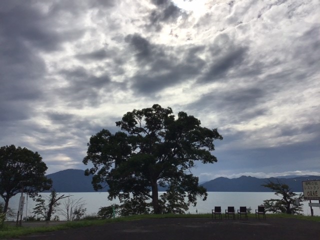 今日の田沢湖は朝から曇っています。