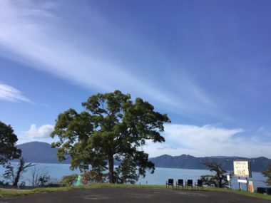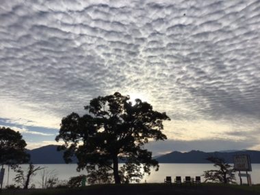 湖一面に羊雲がかかっています。