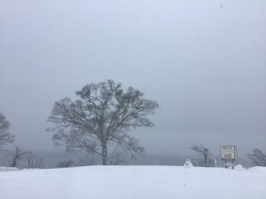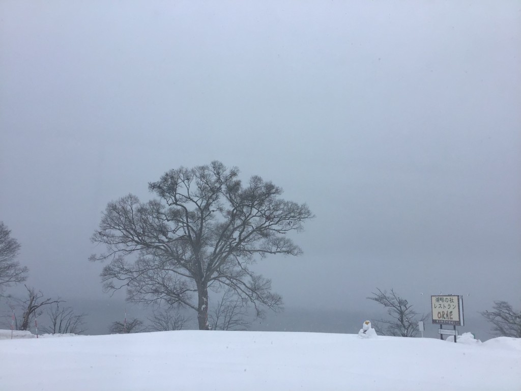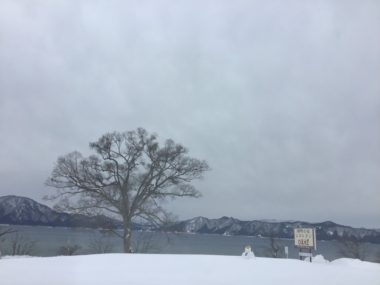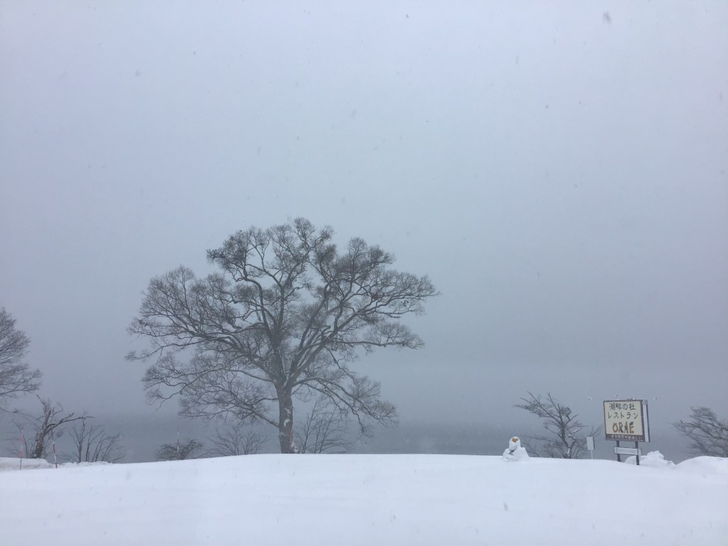 田沢湖は雪が降っています。