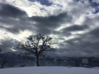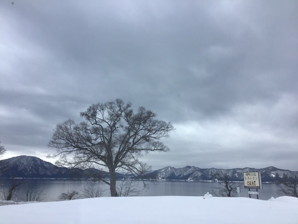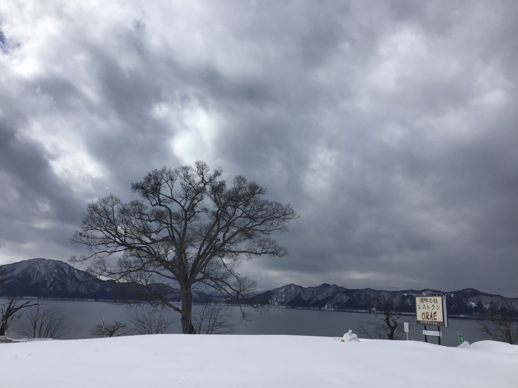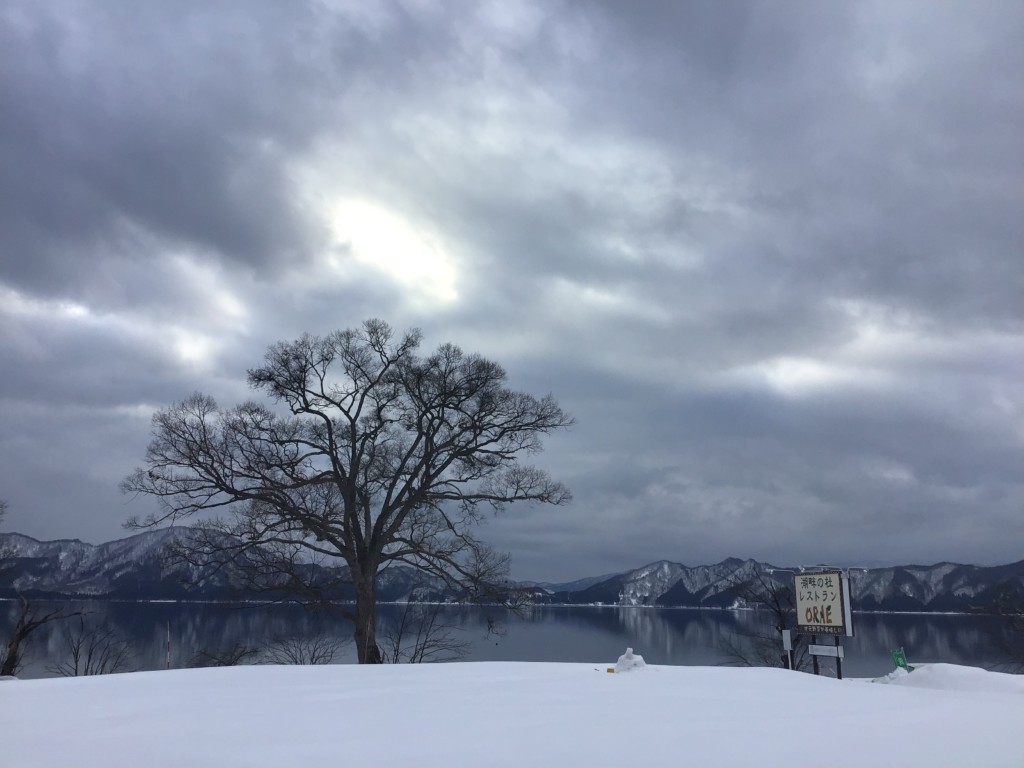 今日の田沢湖は曇り空です。