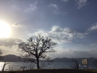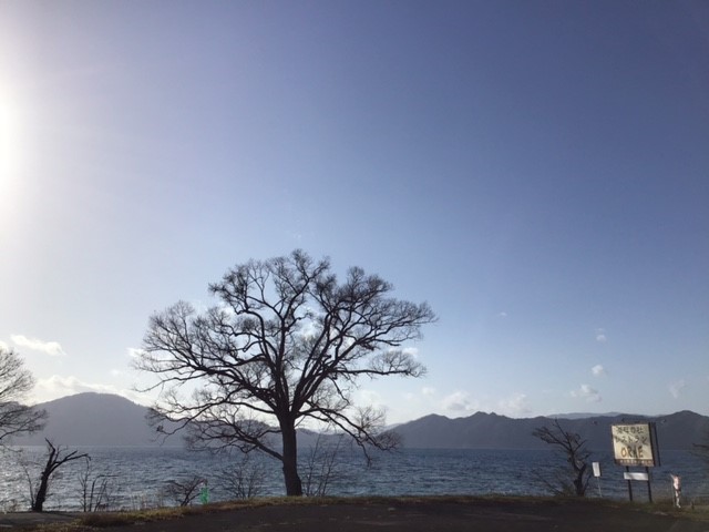 風が冷たいですが同じくらい田沢湖に日差しが降り注いでいます。