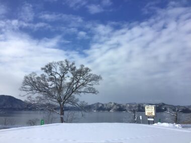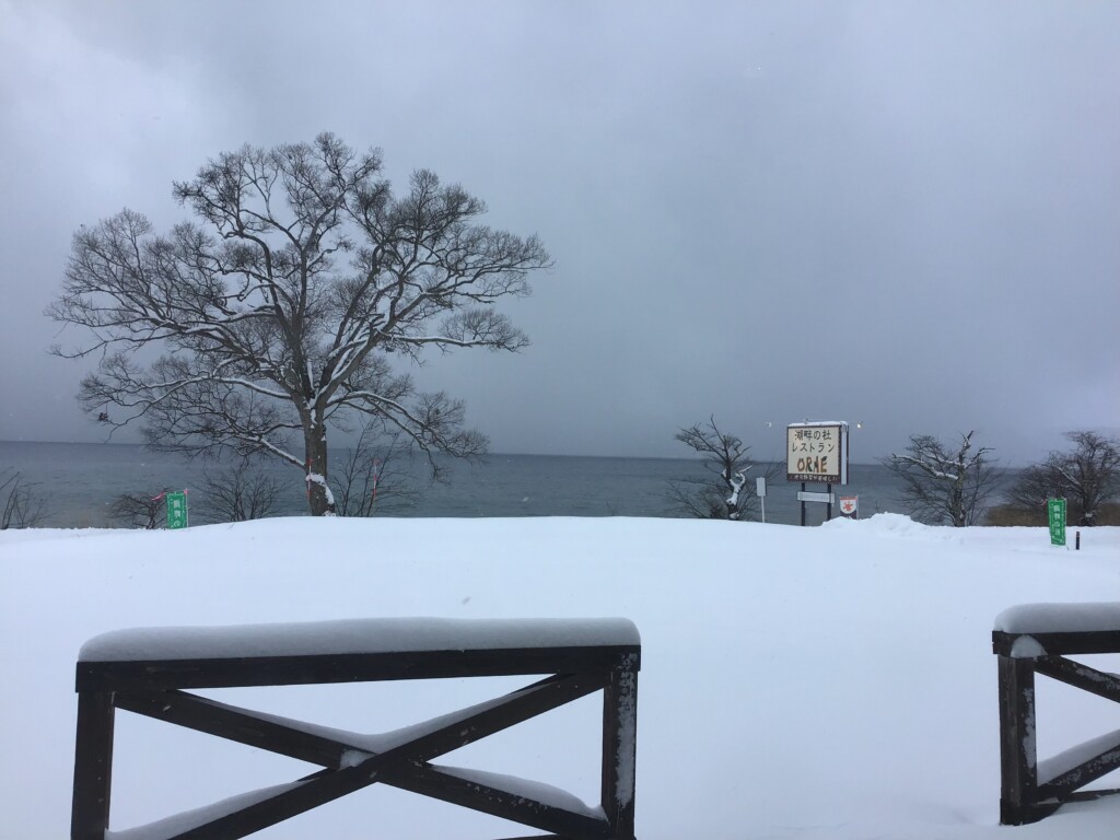 朝は路面が凍りスケートリンクのようでした。