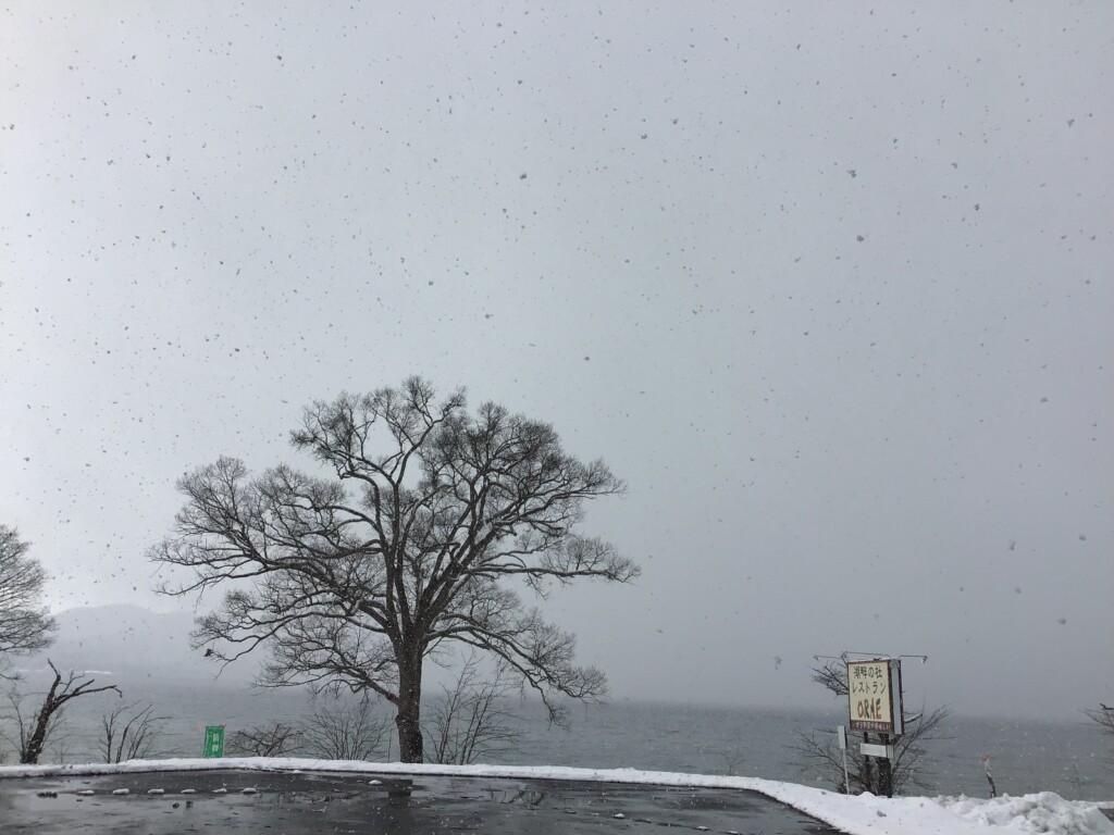 ふわふわと雪が舞っています。