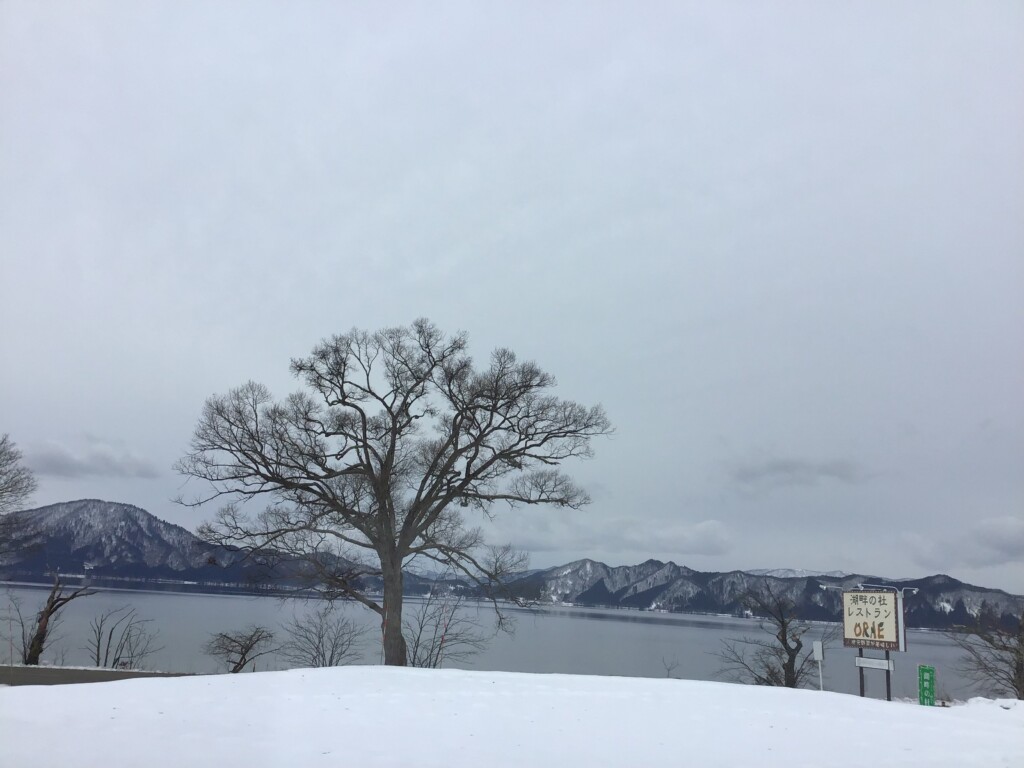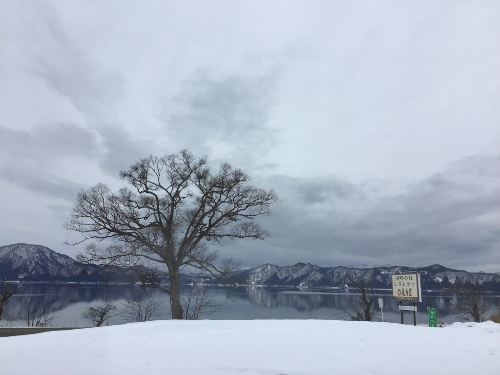 田沢湖の湖面が鏡のようになっています。