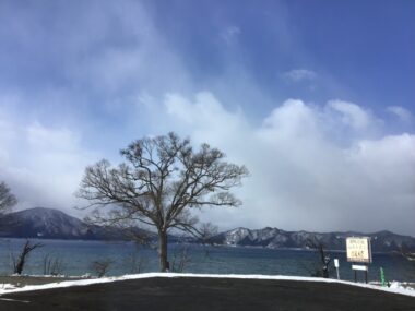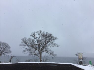 晴れていますが雪が舞っています。