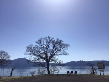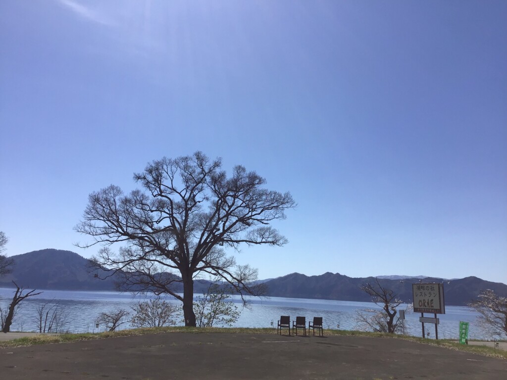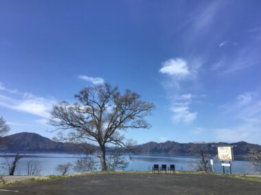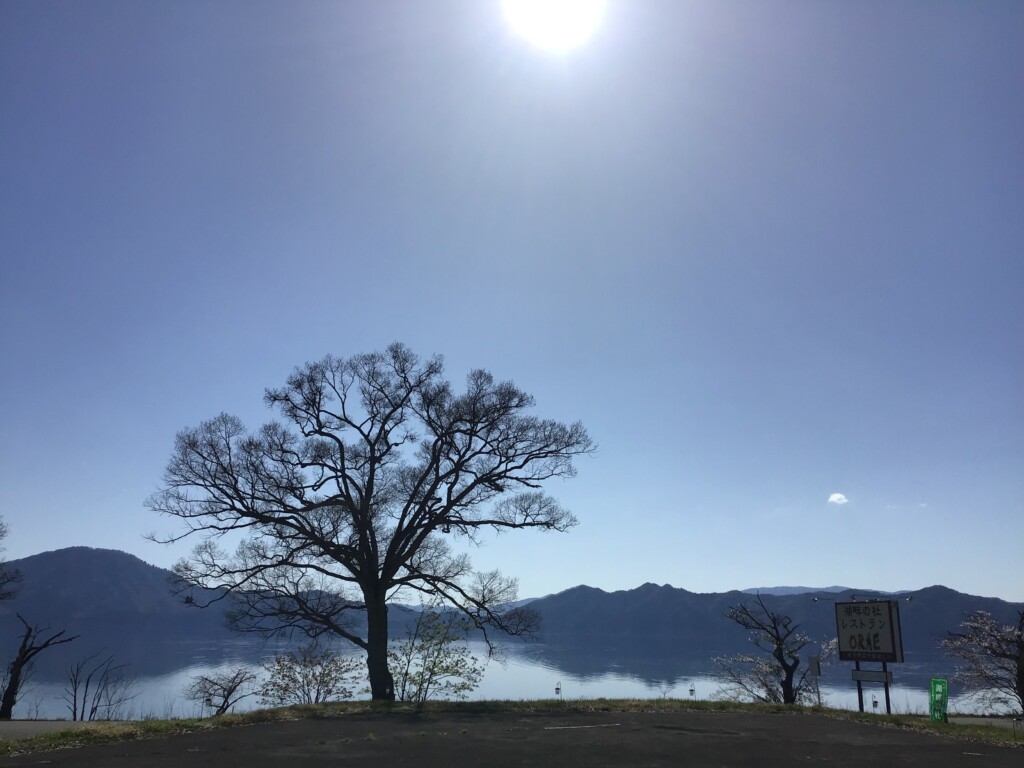 田沢湖も空も青く美しいです。