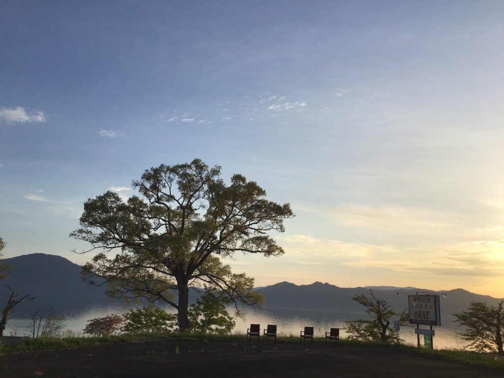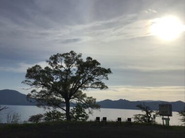 夕日が田沢湖を包んでいます。