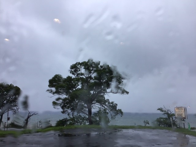 時折、横風が吹き付けます。