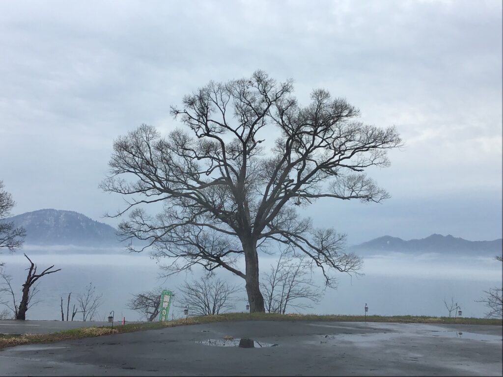 田沢湖は雨が降っています。