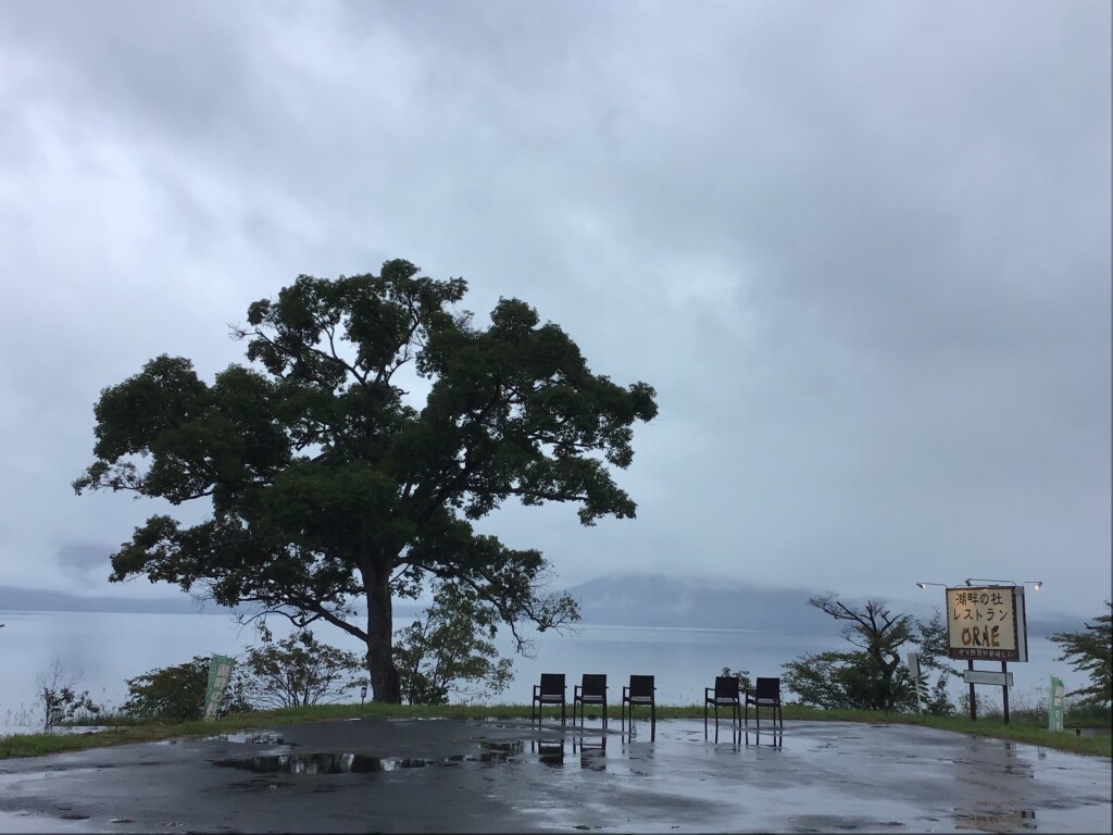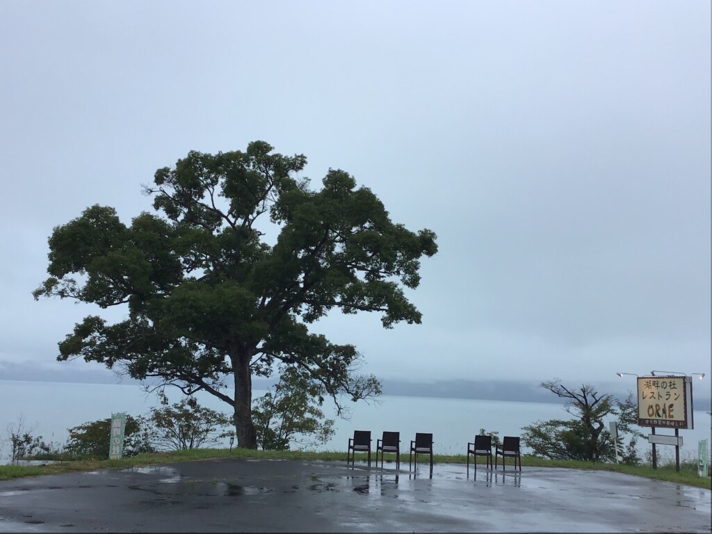 霧が濃くて田沢湖が見えないです。