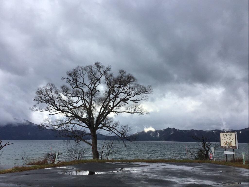 田沢湖は小雨が降っています。