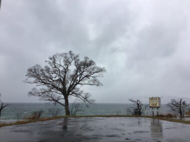 風で白波が立っています。