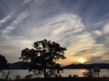 太陽が湖面に反射しています。