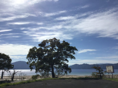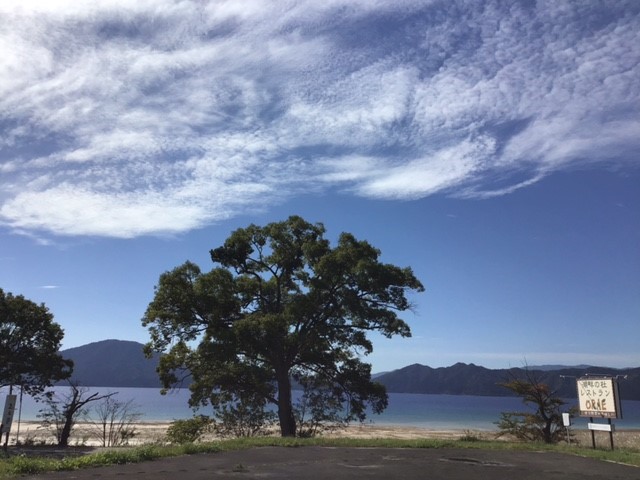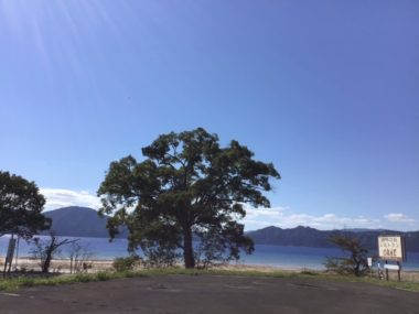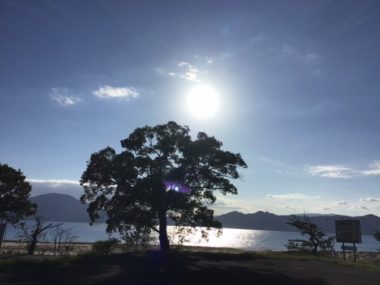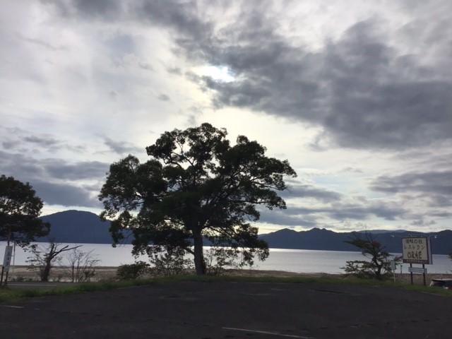 太陽が田沢湖に反射してとても眩しいです。