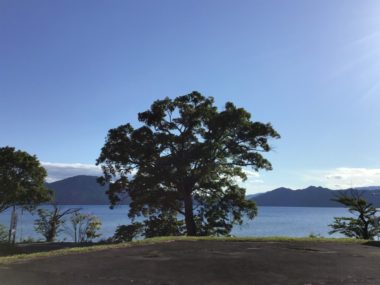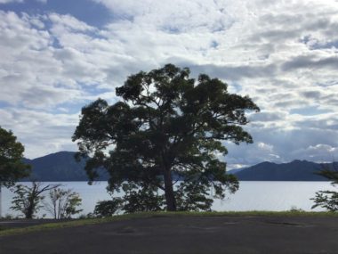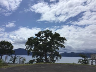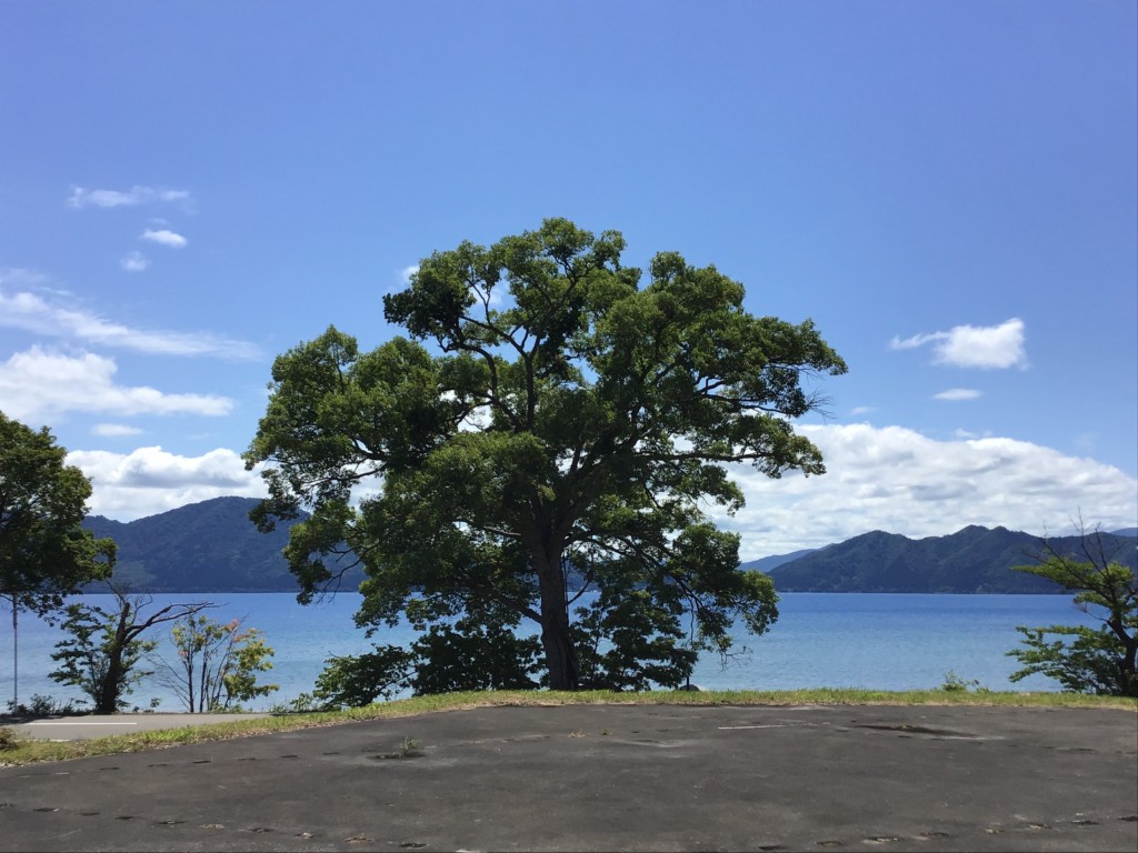 今朝の田沢湖は雲が広がっています。
