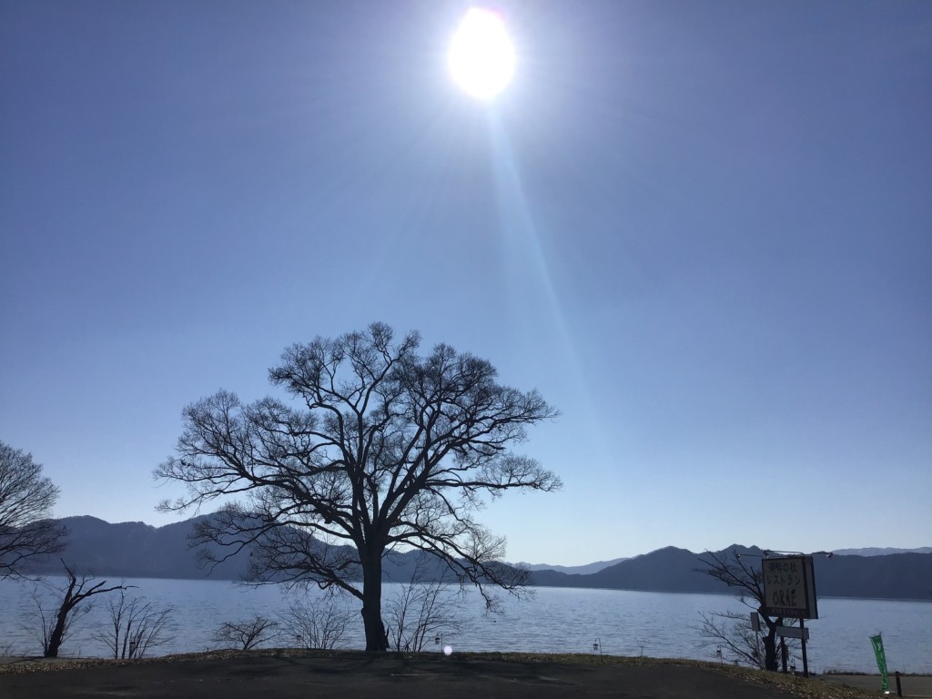 田沢湖の湖面がキラキラと輝いていてとても眩しいです。