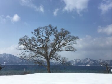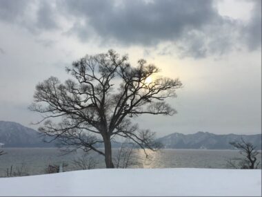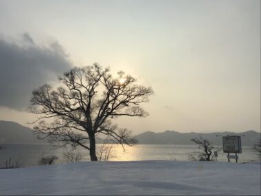対岸の山々が霧がかっていますが黄砂のようにも見えます。