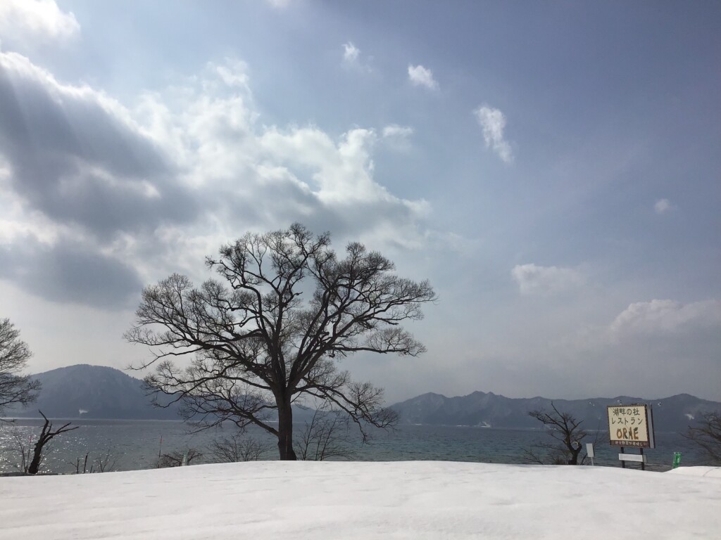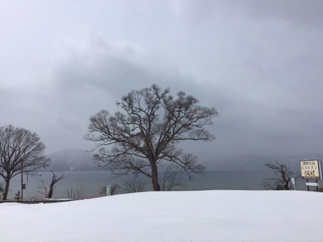 対岸の山々が霧がかっていますが黄砂のようにも見えます。