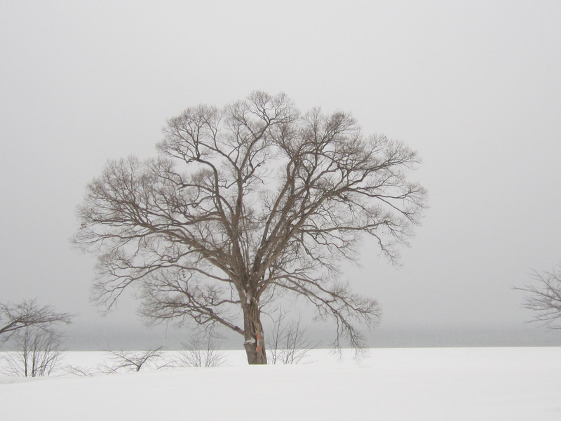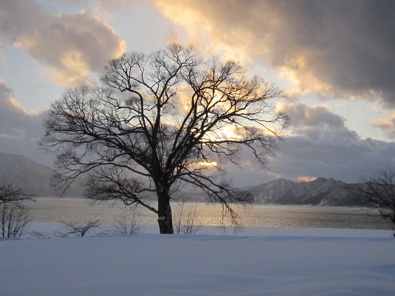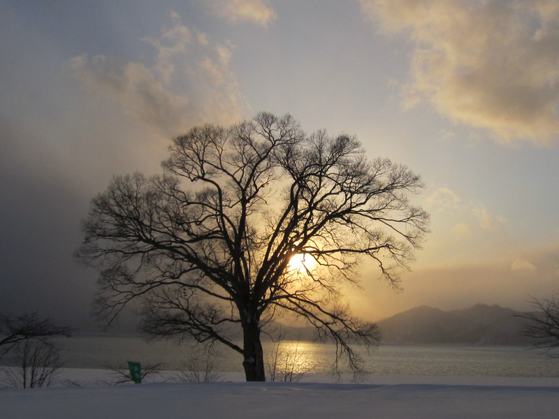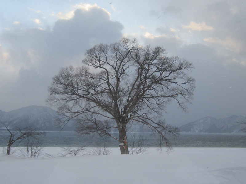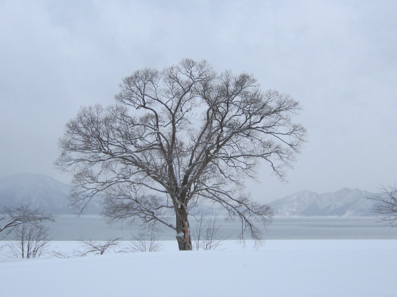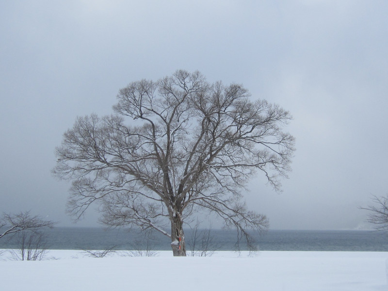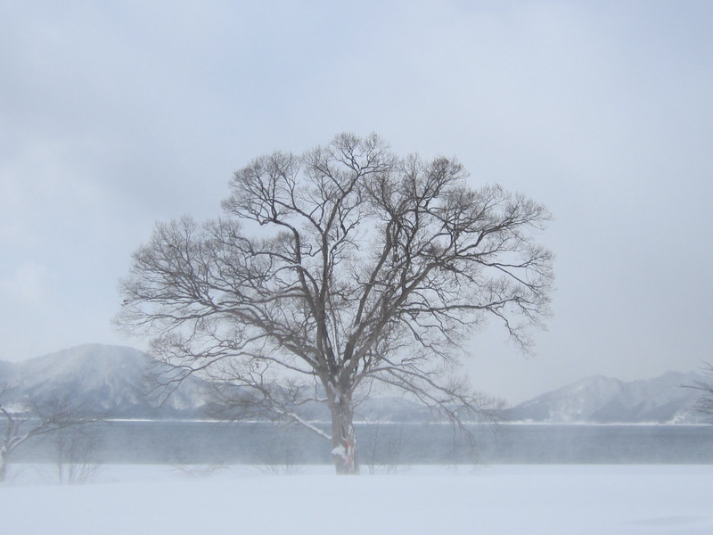 湖の対岸が見えないくらい雲が覆ってきました。。雪も降り始めてきました...
