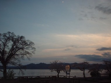 湖畔の桜はまだ散らずに咲いています。