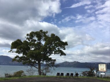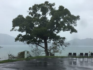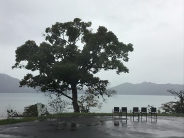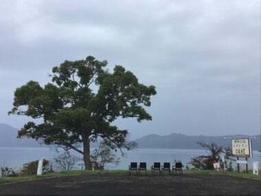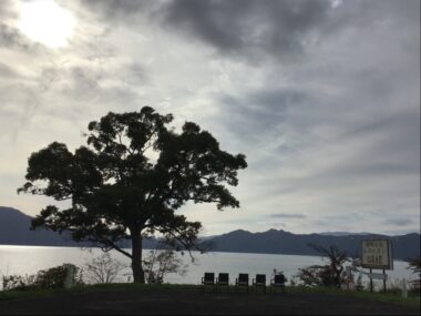 濃い霧で田沢湖が見えません。