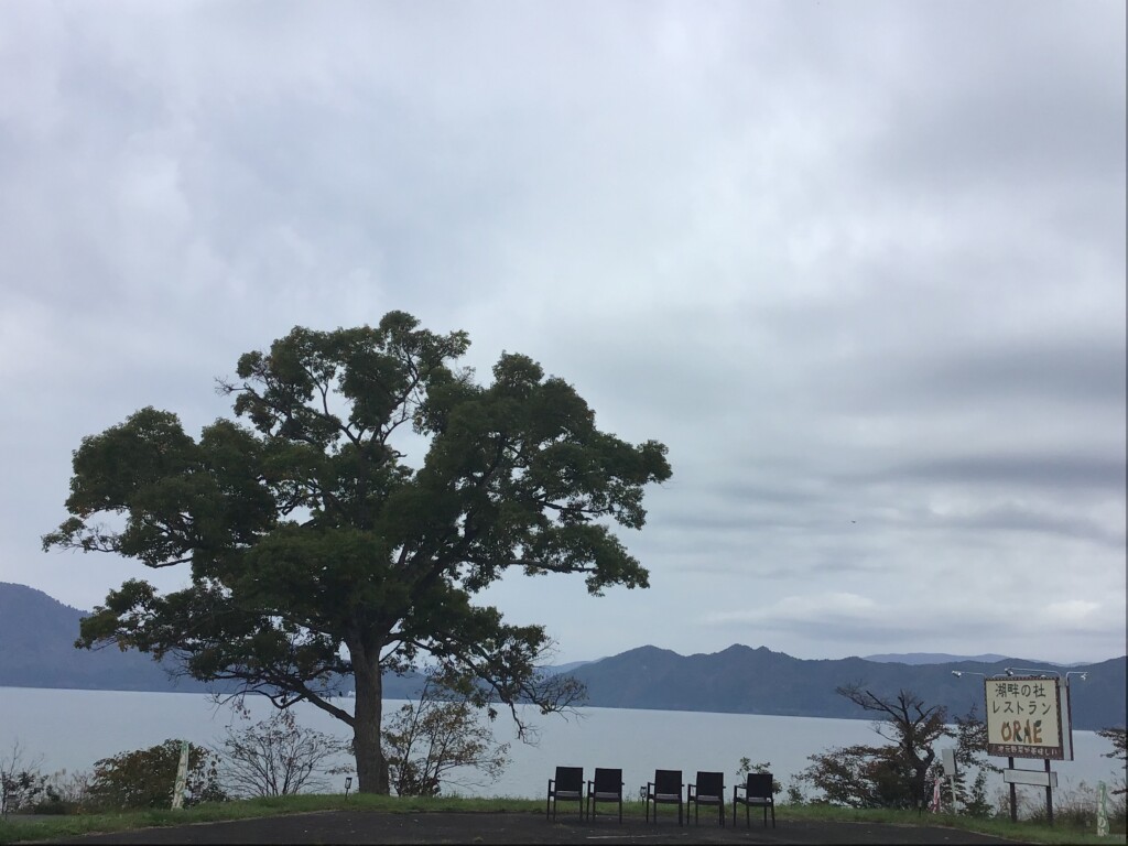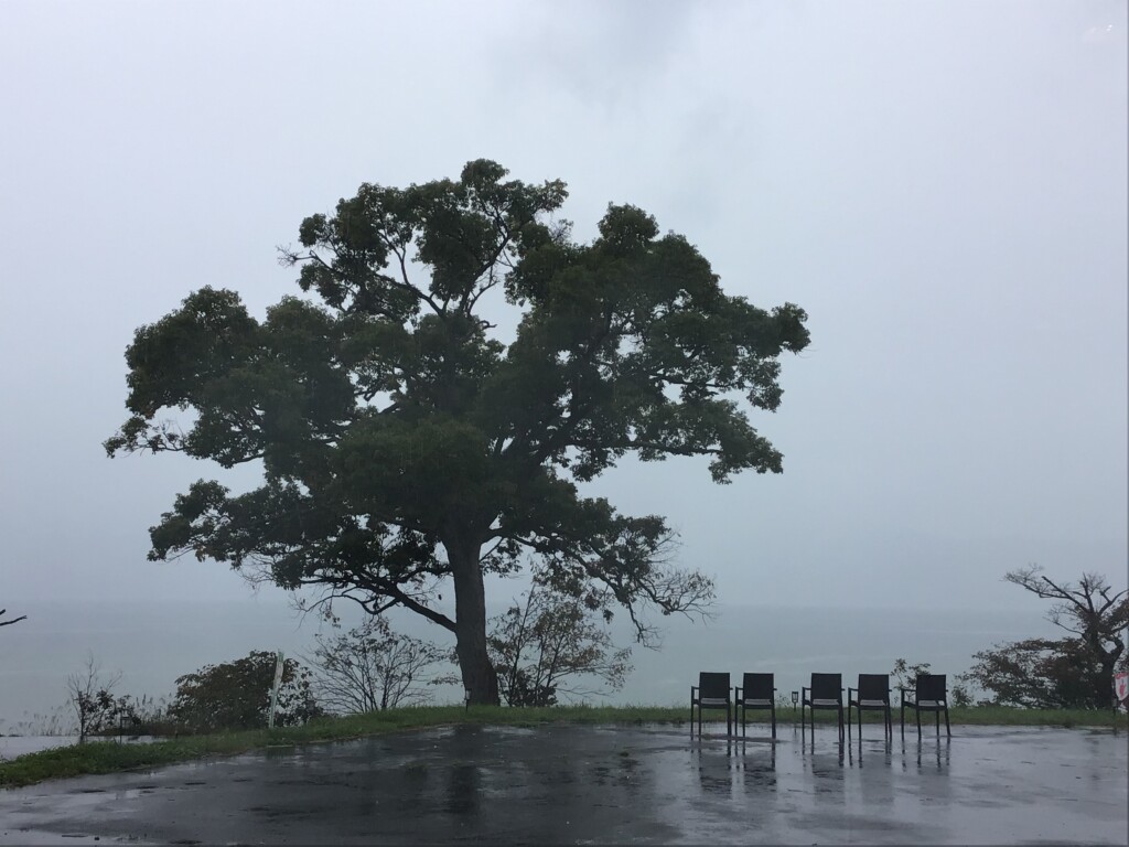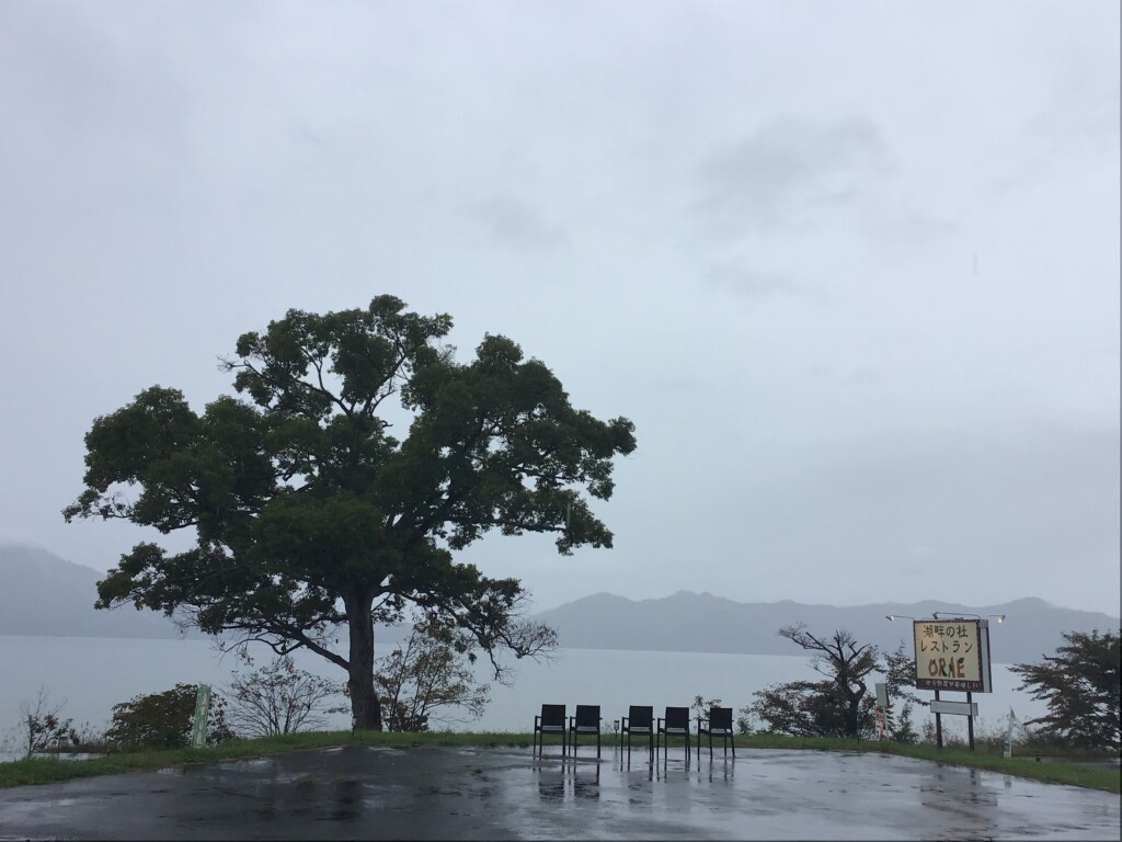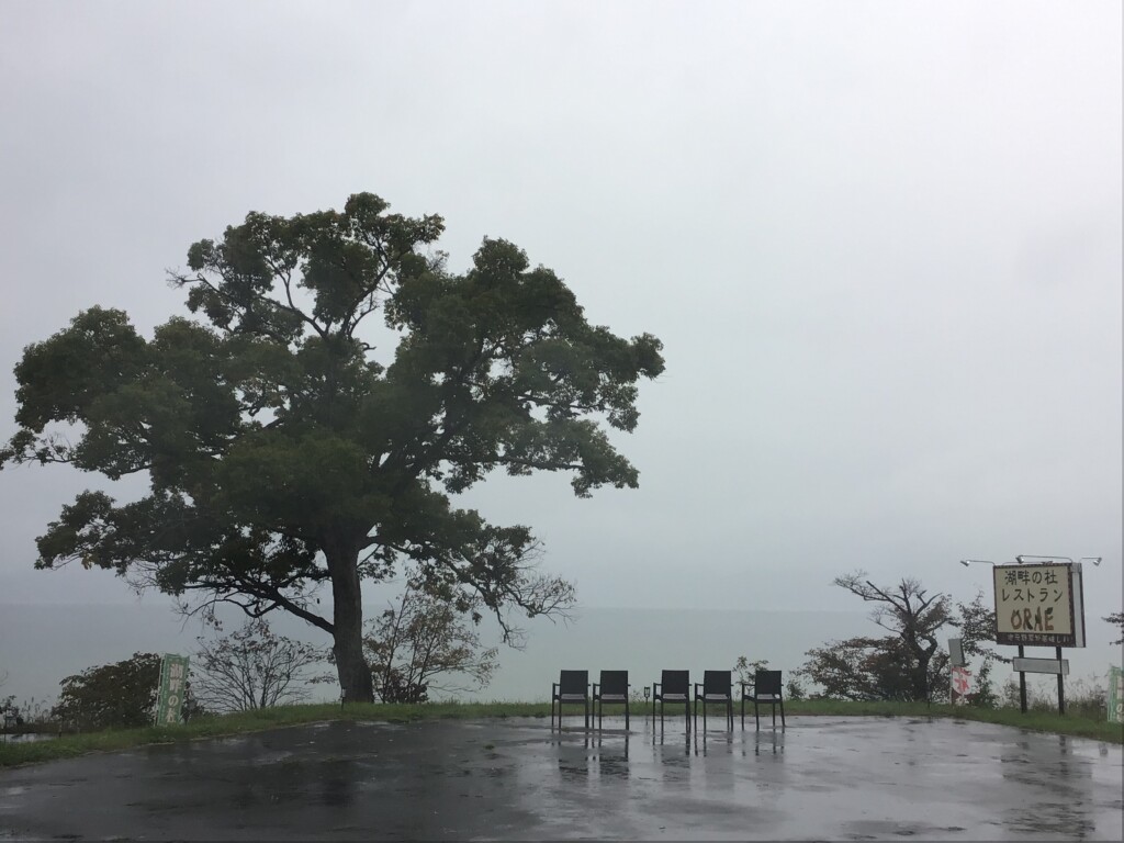 濃い霧で田沢湖が見えません。